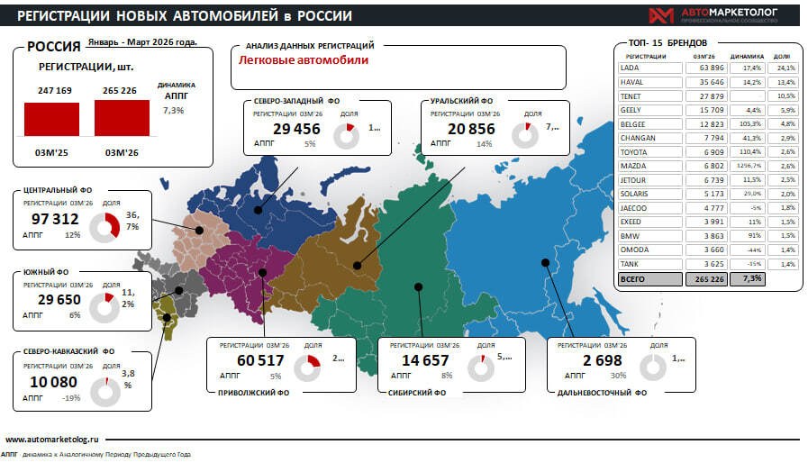 | | Уже скоро! Новая конференция Автомаркетолога | | 21 апреля. 12:00. Бесплатно онлайн. Поговорим о том, как оптимизировать и усовершенствовать сервисные процессы, привлекать и удерживать клиентов, на каких направления сосредоточиться и как не проиграть в конкурентной борьбе. | | | | | | | | | Что происходит на рынке? | | 1. Главный драйвер рынка в марте — новые легковые автомобили. Именно сегмент PC обеспечил основной рост первичных регистраций: 102 836 машин против 78 229 годом ранее, то есть плюс 31%. 2. По итогам первого квартала все новые ТС вместе дали лишь плюс 3% — 292 809 против 283 906 годом ранее, хотя одни только легковые автомобили выросли на 8%, до 261 006 единиц. 3. Вторичный рынок выглядит заметно устойчивее и более сбалансированно, чем рынок новых машин. В марте перерегистрации всех ТС выросли на 5%, до 564 148 единиц, а по итогам января–марта — на 1%, до 1 522 498. 4. Частный спрос на легковые автомобили, особенно на первичке, в марте явно оживился, а вторичный рынок продолжает выполнять роль опоры. | | | А если нужна ещё более подробная свежая аналитика по авторынку, также не проблема! Напишите нам в бот @amfeedbackbot для заказа дашбордов: по России или по любому из регионов. Хотите «пощупать» формат перед заказом? Ниже представлен демо-дашборд за март по новым автомобилям как пример. Заказанные вами будут выглядеть так же, но там будет больше данных и они будет самыми свежими. | | | | | | | | Интересные материалы недели | | | | | Почему покупка б/у электромобиля именно сейчас логична | У потребителей есть веские причины задуматься о покупке электромобиля именно сейчас: отчасти потому, что, например, на банковские счета американцев поступают федеральные налоговые возвраты, а перспективы сильного роста цены на топливо может серьезно ударить по семейному бюджету, особенно тем, у кого дети посещают много тренировок по футболу и уроков танцев. | | | | Что нарушило автопланы Sony? | Масштабная интеграция Sony в автомобильную отрасль натолкнулось на неожиданное препятствие. Будущее партнерства, направленного на объединение потребительских технологий с автомобилестроением, теперь находится под вопросом после неожиданного шага со стороны ключевого союзника. | | | | | Если вы хотели купить отчёты по продажам новых ТС и ТС с пробегом по РФ или регионам, а также отчёты по финансовой ёмкости рынка новых ТС в формате дашборда, теперь это проще простого. Пишите в бот @amfeedbackbot в Телеграм и покупайте напрямую, без заключения договора. Просто укажите, какие данные вам нужны. Рекомендуем пользоваться этой возможностью для разовых покупок дашбордов. А вот для постоянного мониторинга рынка есть удобная онлайн-платформа, которая постоянно развивается, обязательно зарегистрируйтесь. | | | | Рубрика «Разговор Первых» возвращается с интересными гостями. Компанию Татьяне составил Антон Смирнов из SteadyControl. Поговорили обо всём, об изменениях на рынке, роли государства и импортозамещении, прогнозах на будущее и о многом другом! Было интересно, надеемся, вам будет не менее интересно! Смотрите там, где вам удобнее всего! YouTube | RuTube | VK Видео | | | | Татьяна вновь делится всем важным и интересным, что произошло за последнее время в автобизнесе в свежем выпуске автоновостей. Смотрите там, где удобно! YouTube | RuTube | VK Видео | | | | В проекте «Актуалочка» разбираем, что на самом деле происходит в марте–апреле 2026 года. Смотрите там, г